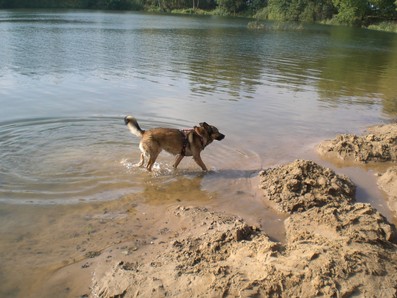 We got "Shorty" as she was 10 weeks old. She was left alone at the Highway. She was at a animal-shelter. She missed the important things to learn while she was young. I am shocked to see how some people treat animals. We were spendig much time and effort in our dog. Nontheless she is very scared. "Shorty" hates umbrellas, loud noise and a crowd of humans but she loves cats, her dogplace, and the dwarf poodle Alisha from my mom